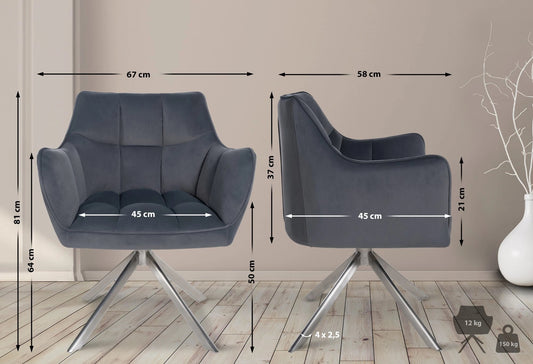 In And OutdoorMatch Esszimmerstuhl Wet – Grau und Edelstahl – Samt – Hochwertige Polsterung – Moderner Esszimmerstuhl – Deluxe-Look