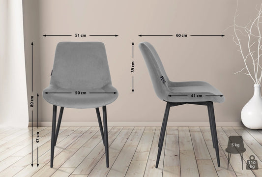 In And OutdoorMatch Esszimmerstuhl Carolina – Grau – Samt – Hochwertige Polsterung – Klassischer Esszimmerstuhl – Stilvolles Erscheinungsbild