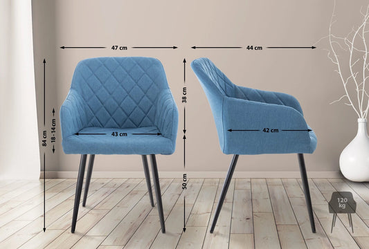 In And OutdoorMatch Esszimmerstuhl Dulce – Blau – 2er-Set – Stoff – Hochwertige Polsterung – Stilvoller Esszimmerstuhl – Moderner Look