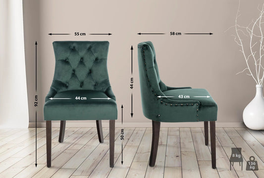 In And OutdoorMatch Esszimmerstuhl Marylou – Grün – 2er-Set – Samt – Hochwertige Polsterung – Stilvoller Esszimmerstuhl – Moderner Look