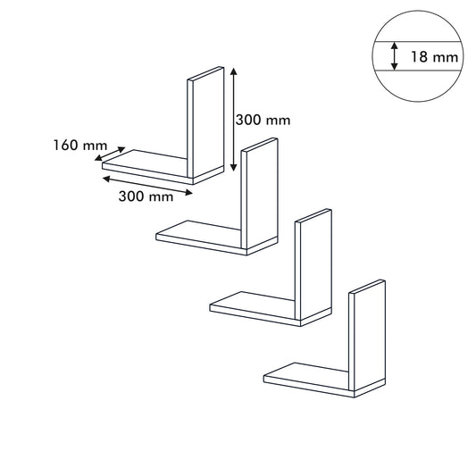 In And OutdoorMatch Wandregal Finn – 4er-Set – Schwarz – Spanplatte – Stilvolles Design