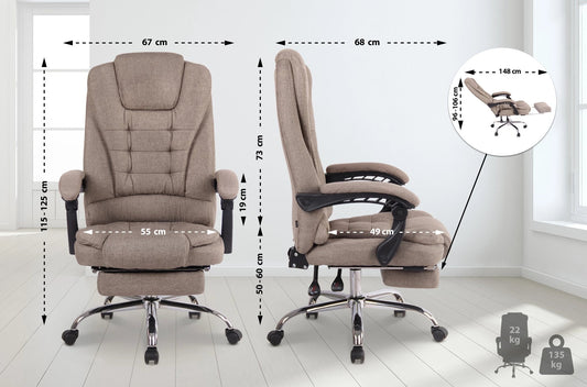In And OutdoorMatch Bürostuhl Gillian – Beige – Fußstütze – Stoff – Exklusiver Bürostuhl – Hochwertige Polsterung – Bequemer Bürostuhl – Luxuriöse Optik