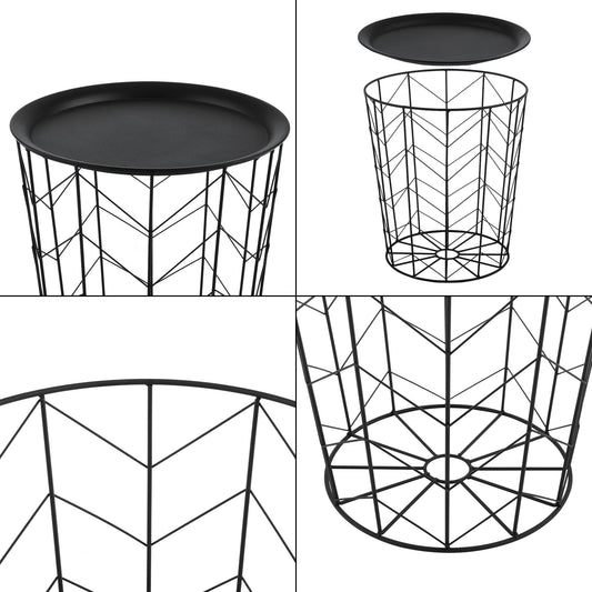 In And OutdoorMatch Beistelltisch Ephraim – 2er-Set – mit abnehmbarer Tischplatte – Schwarz – Metall – stilvoller Korb