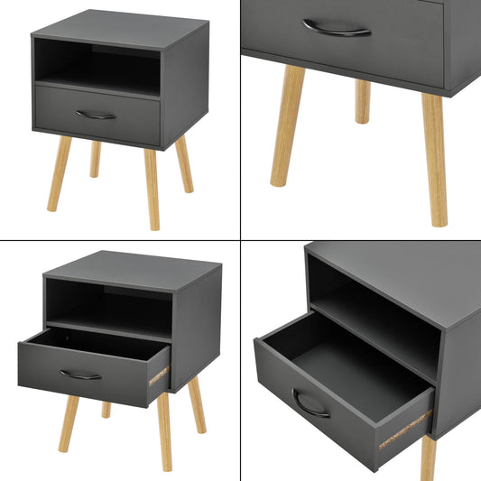In And OutdoorMatch Nachttisch Nikki – Mit Schublade und offenem Fach – 57 x 42 x 40 cm – Schwarz und dunkles Holz – Modernes Design