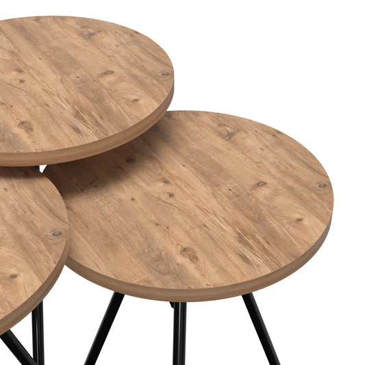 In And OutdoorMatch Beistelltisch Erik – 3er-Set – Rund – Holzfarben und Schwarz – Spanplatte und Metall – Stilvolles Design