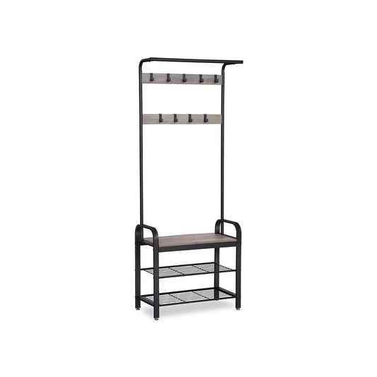 In And OutdoorMatch Standgarderobe Orland – Mit Schuhregal-Stauraum – Grau – 9 Haken – Wandgarderobe – Industrial – 183 cm