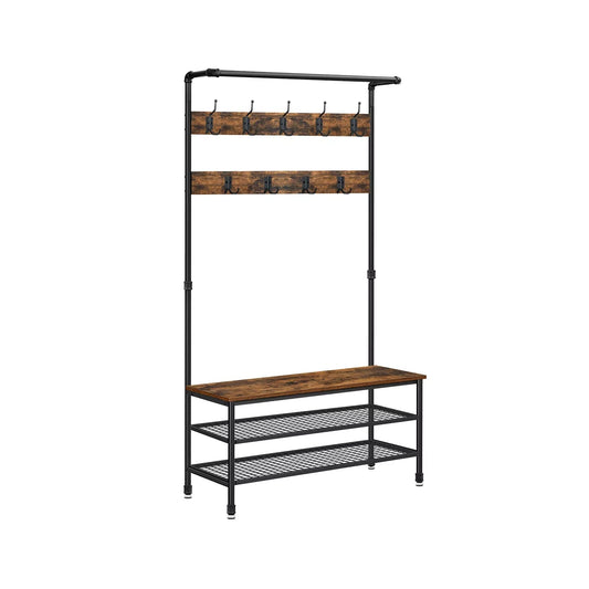 In And OutdoorMatch Garderobe Liliane – Mit Schuhregal – Wandgarderobe – Industrial – Mit Regal – Hutablage – 100 x 40 x 184 cm
