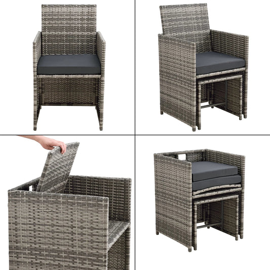In And OutdoorMatch Gartenset Jerry – 4-teilig – Tisch – Bank – 2x Stühle – Schwarz und Grau – Luxus-Look