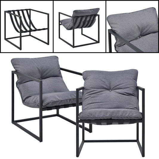 In And OutdoorMatch Gartenset Retta – 4-teilig – Lounge-Set – Dunkelgrau und Schwarz – Stahl, Glas und Stoff – Stilvolles Erscheinungsbild