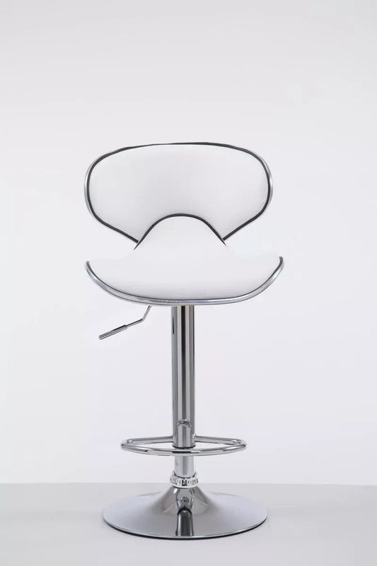 In And OutdoorMatch Barkruk Kareem - Wit/Zilver - Chroom - Industrieel Design - Rugleuning - Voetensteun - Imitatie Leder - Gestoffeerde Zitting