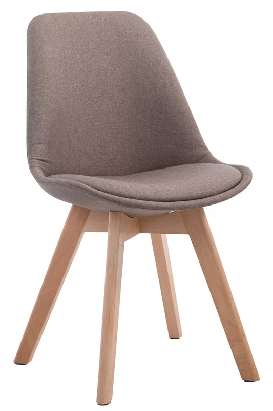 In And OutdoorMatch Eetkamerstoel Lue - Taupe stof - naturel houten poten - set van 1 - zithoogte 47 cm - modern