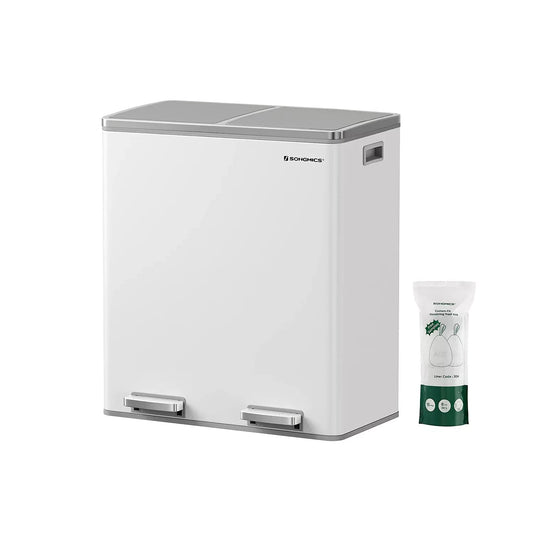 In And OutdoorMatch Pedaalemmer Akim Loyal - Prullenbak afvalscheiding - RVS - 2-delige scheider - Wit - 58,6 x 32 x 65 cm cm