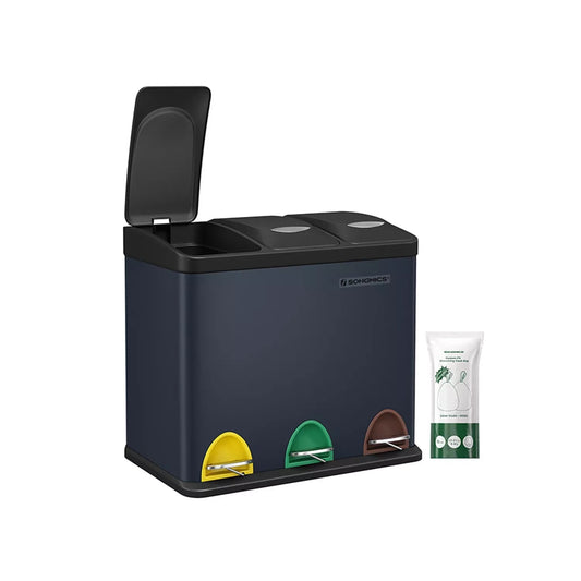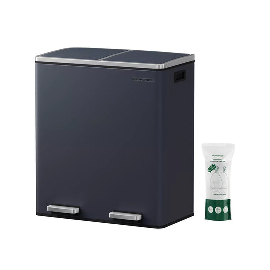 In And OutdoorMatch Pedaalemmer Danihel Justina -15L - Prullenbak afvalscheiding - RVS - 2-delige scheiding - Blauw - 46,5 x 29,5 x (40,5-65) cm