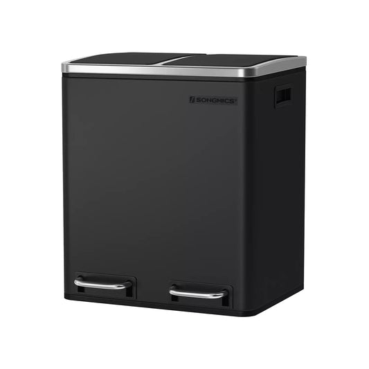 In And OutdoorMatch Pedaalemmer Evi Deondre - Prullenbak afvalscheiding - RVS - 2-delige scheider - Zwart - 58,6 x 32 x 65 cm cm