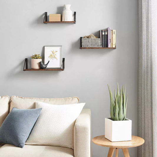 In And OutdoorMatch Wandplank Keanu - Industrieel - Set van 3 - Zwevend - Wandrek - Wandplank - Boekenplank - Fotoplank - Bruin