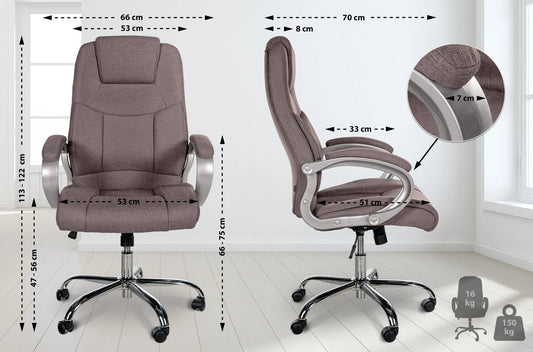 In And OutdoorMatch Bureaustoel Nikolas - Bruin - Stof - Hoge kwaliteit bekleding - Exclusieve bureaustoel - Luxe uitstraling