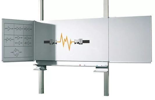 Whiteboard Deluxe Randall - Emaille staal - Schuifmechanisme - Vijfzijdige schoolbordwand - Weekplanner - Maandplanner - Jaarplanner - Magnetisch - Wit - 120x400cm
