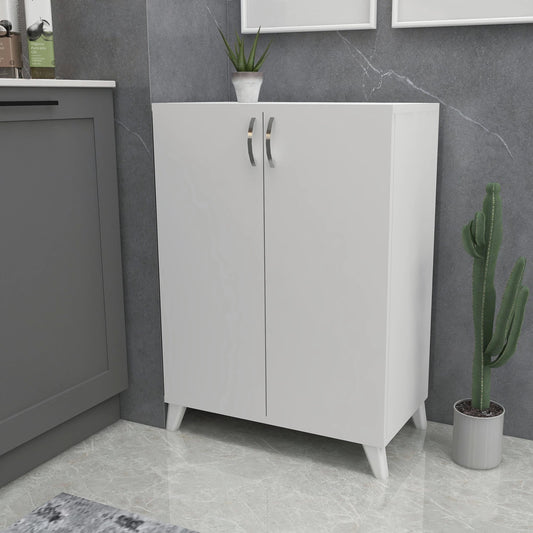 In And OutdoorMatch Opbergkast Jabari - 86,5x72x32,5 cm - Wit - Spaanplaat - 2 Deuren - 4 Opbergvakken - Stijlvolle Kast