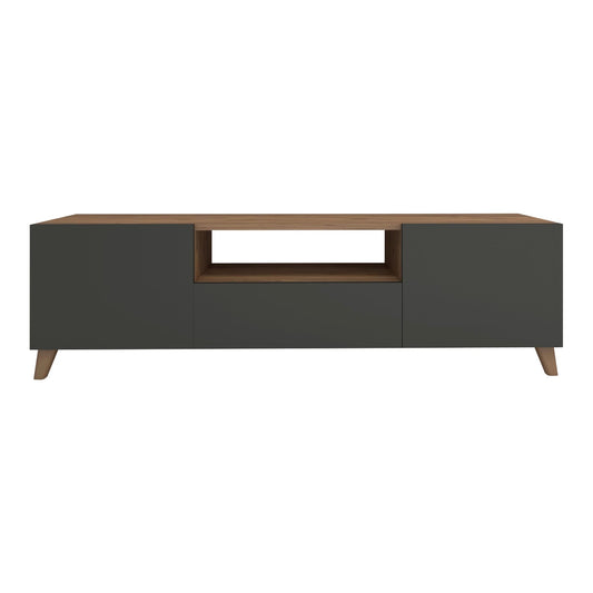 In And OutdoorMatch TV Meubel Poki - 46x140x30 cm - Eiken en Antraciet - Spaanplaat - 3 Deurs en Open Compartiment