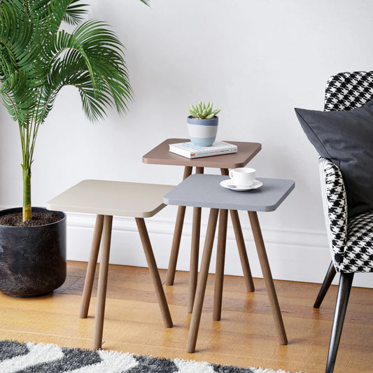 In And OutdoorMatch Bijzettafel Darrell - Set van 3 - Meerkleurig - Spaanplaat en Beuken - Stijlvol Design
