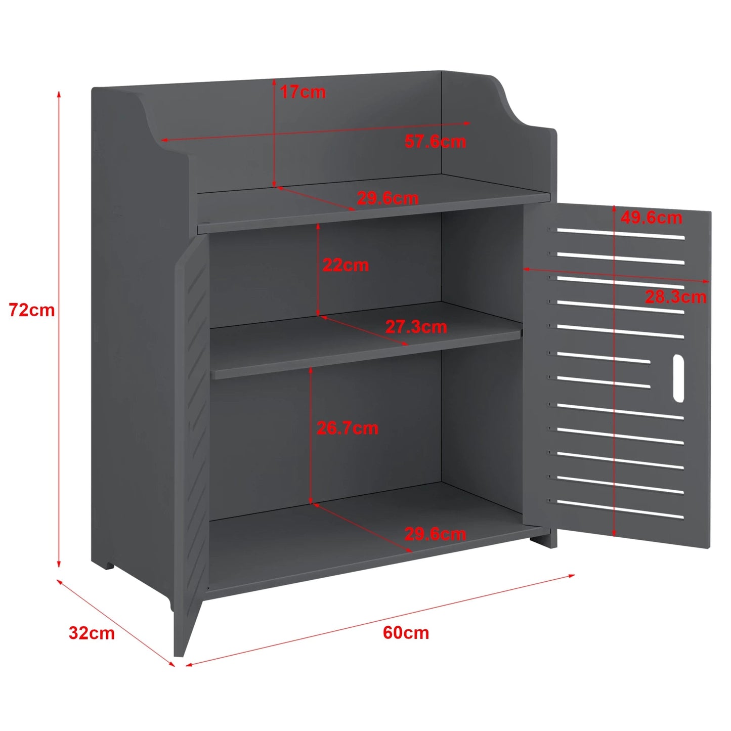 In And OutdoorMatch Badezimmerschrank Bradly – Aufbewahrungsschrank – HKC – 72 x 60 x 32 cm – Dunkelgrau – mit 2 Ablagefächern