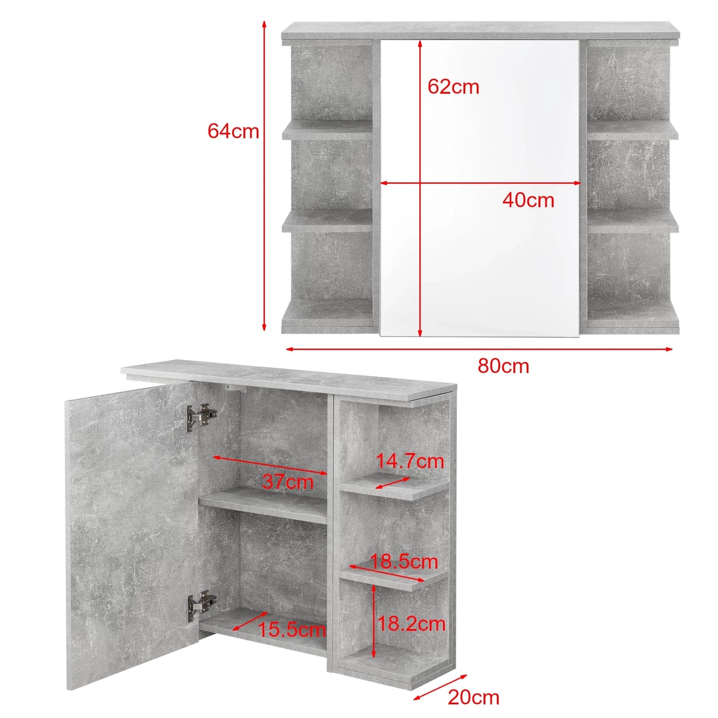 In And OutdoorMatch Badezimmermöbel Rubie – Mit Spiegel – Spiegelschrank – Betonfarben – Spanplatte – Stilvolles Design