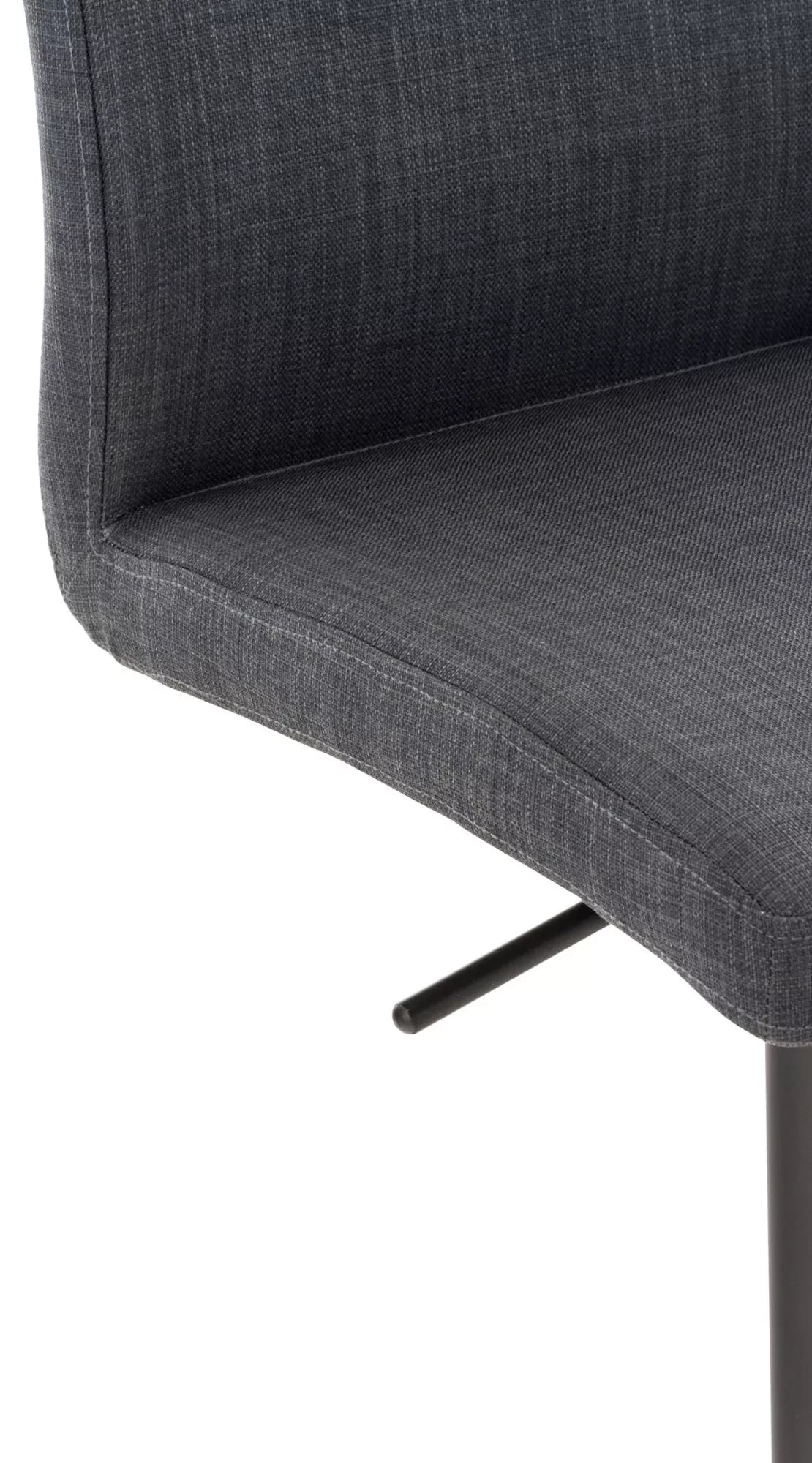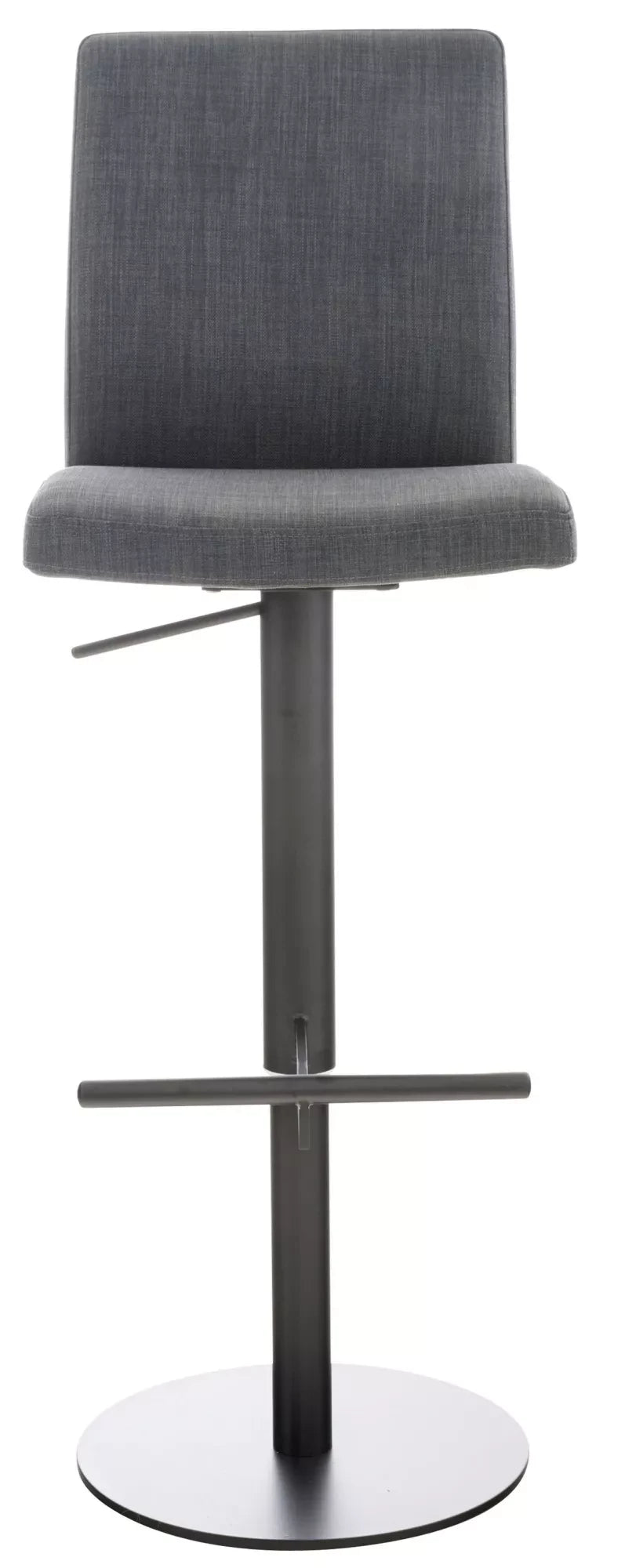 Mit seinem schlichten und klassischen Design passt dieser Barhocker in jeden Wohnraum. Der gepolsterte Sitz mit Rückenlehne und Fußstütze sorgen für eine bequeme Sitzposition. Der Barhocker ist mittels Gasfeder höhenverstellbar und um 360 Grad drehbar. Die angebrachte Fußstütze lässt sich synchron zur Sitzhöhe verstellen und ermöglicht so ein bequemes Sitzen über mehrere Stunden. Das Design wird durch das Metallgestell aus mattschwarzem oder gebürstetem Edelstahl ergänzt und verleiht dem Barstuhl seine Stabilität. Das Gestell ist außerdem mit einem Bodenschutz ausgestattet, der Kratzer und Beschädigungen des Bodens verhindert.