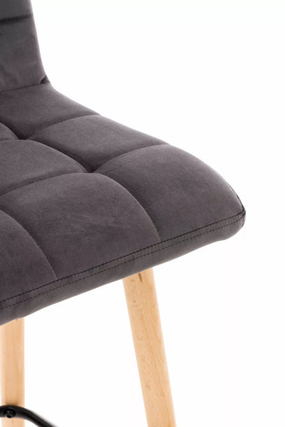 In And OutdoorMatch Barhocker Luciana Dave – Grau – Samt – Holz – Modernes Design – 4-beiniges Gestell – Rückenlehne – Fußstütze – Für Küche und Bar – Gepolsterter Sitz
