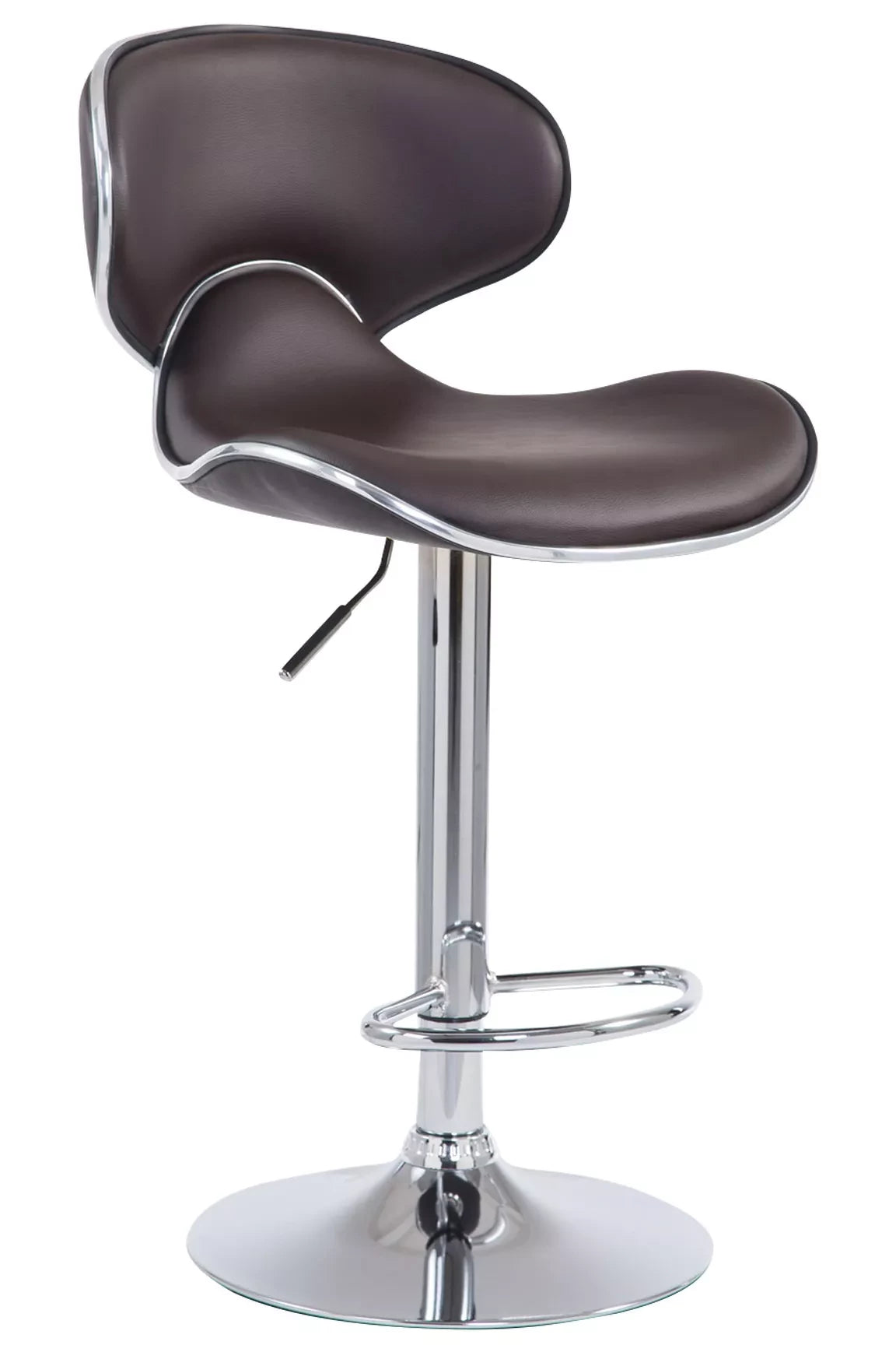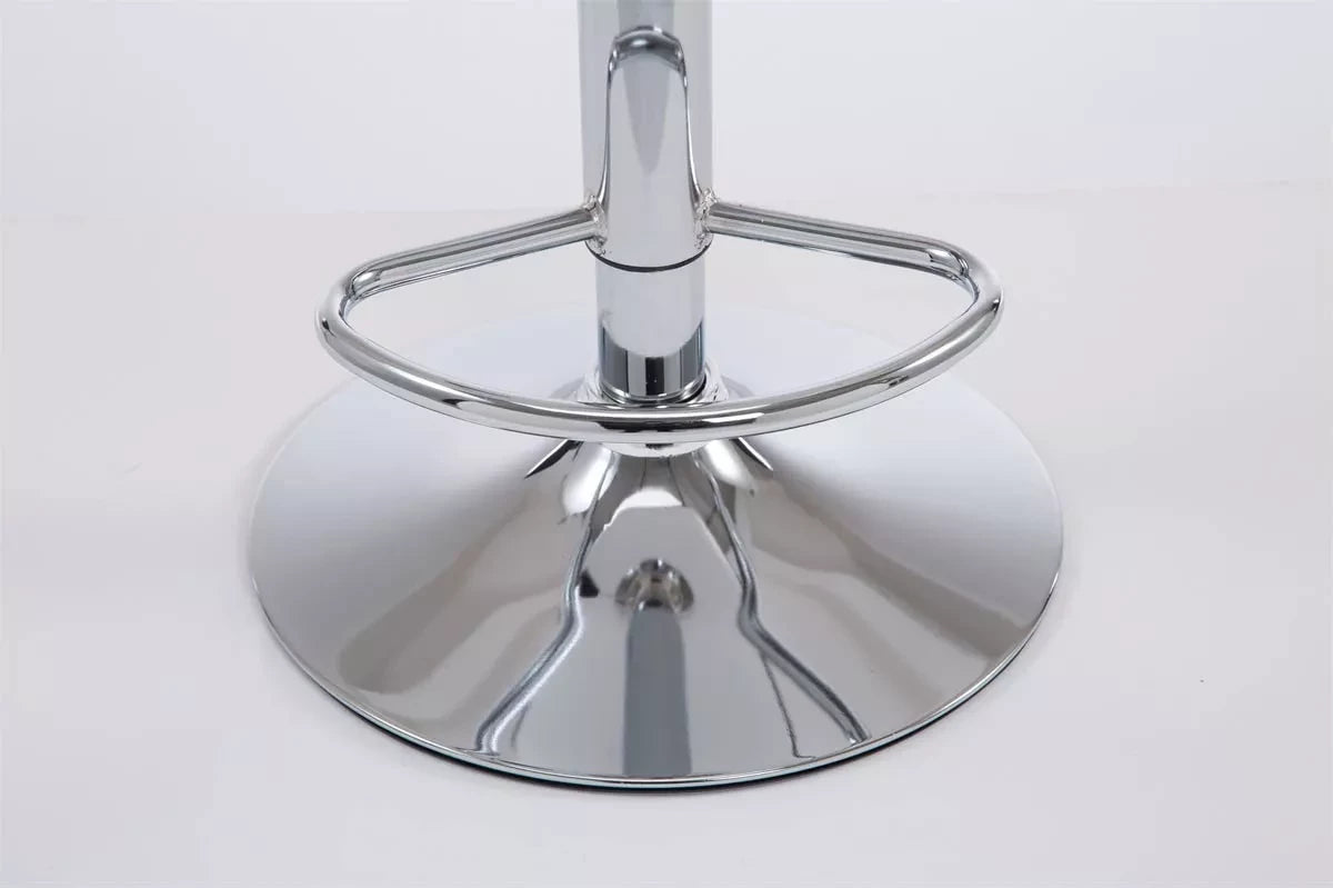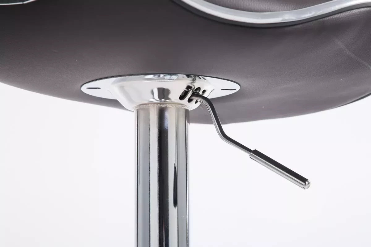 Dieser Barhocker vereint Komfort und Design auf beste Weise! Er besteht aus robusten Materialien: Die Sitzfläche ist mit pflegeleichtem Kunstleder bezogen und leicht gepolstert. Mittels einer Gasfeder aus Metall ist er stufenlos höhenverstellbar, wahlweise in Chromoptik, mattschwarz oder mattweiß, sodass er für jede Thekenhöhe bestens geeignet ist. Darüber hinaus sorgen die kurze Rückenlehne und die praktische Fußstütze dafür, dass Sie mehrere Stunden lang bequem sitzen können. Der Rahmen verfügt außerdem über einen Bodenschutz, der Kratzer und Beschädigungen des Bodens verhindert.