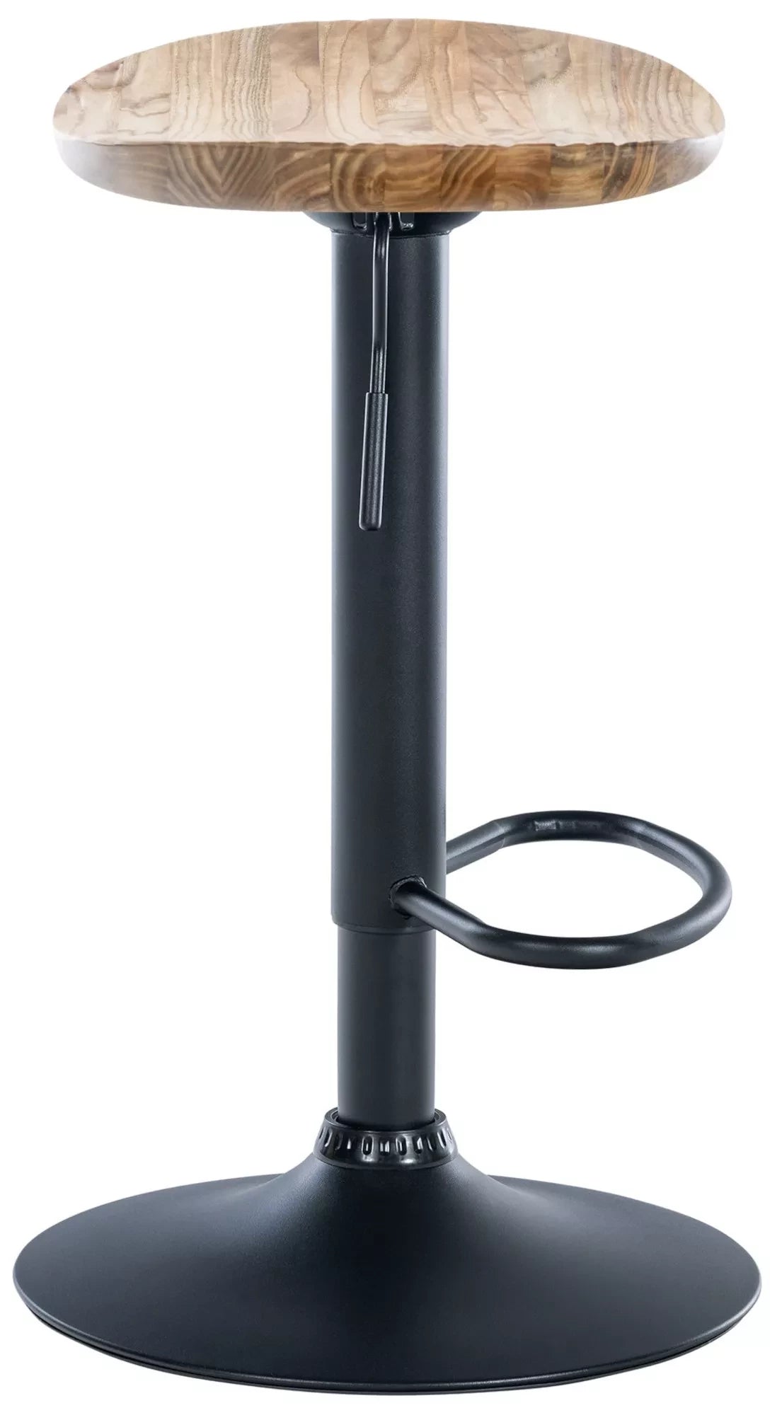 Die Sitzfläche des Barhockers besteht aus Massivholz mit guten Festigkeitseigenschaften und eignet sich daher ideal für die Herstellung hochwertiger Möbel. Der Hocker steht auf einem höhenverstellbaren mattschwarzen Metallgestell. Dieses Gestell ist äußerst bodenschonend, beschädigt daher empfindliche Böden nicht und verfügt zudem über eine bequeme Fußstütze.