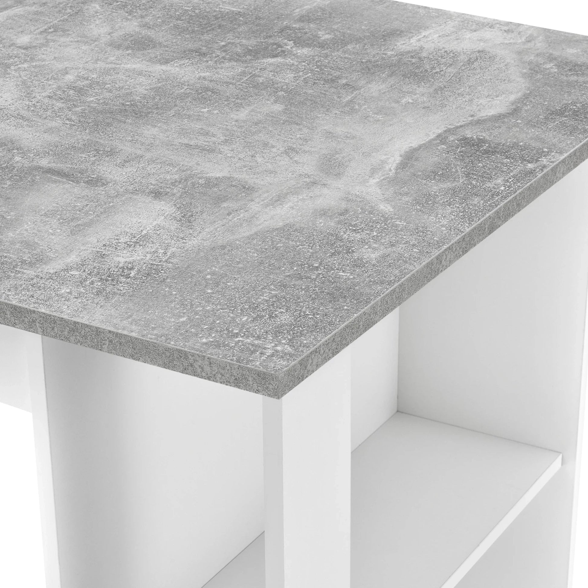 In And OutdoorMatch Bartisch Rebekah – Mit 3 Regalen – 120 x 60 x 105,5 cm – Weiß und Betonfarben – Spanplatte – Modernes Design