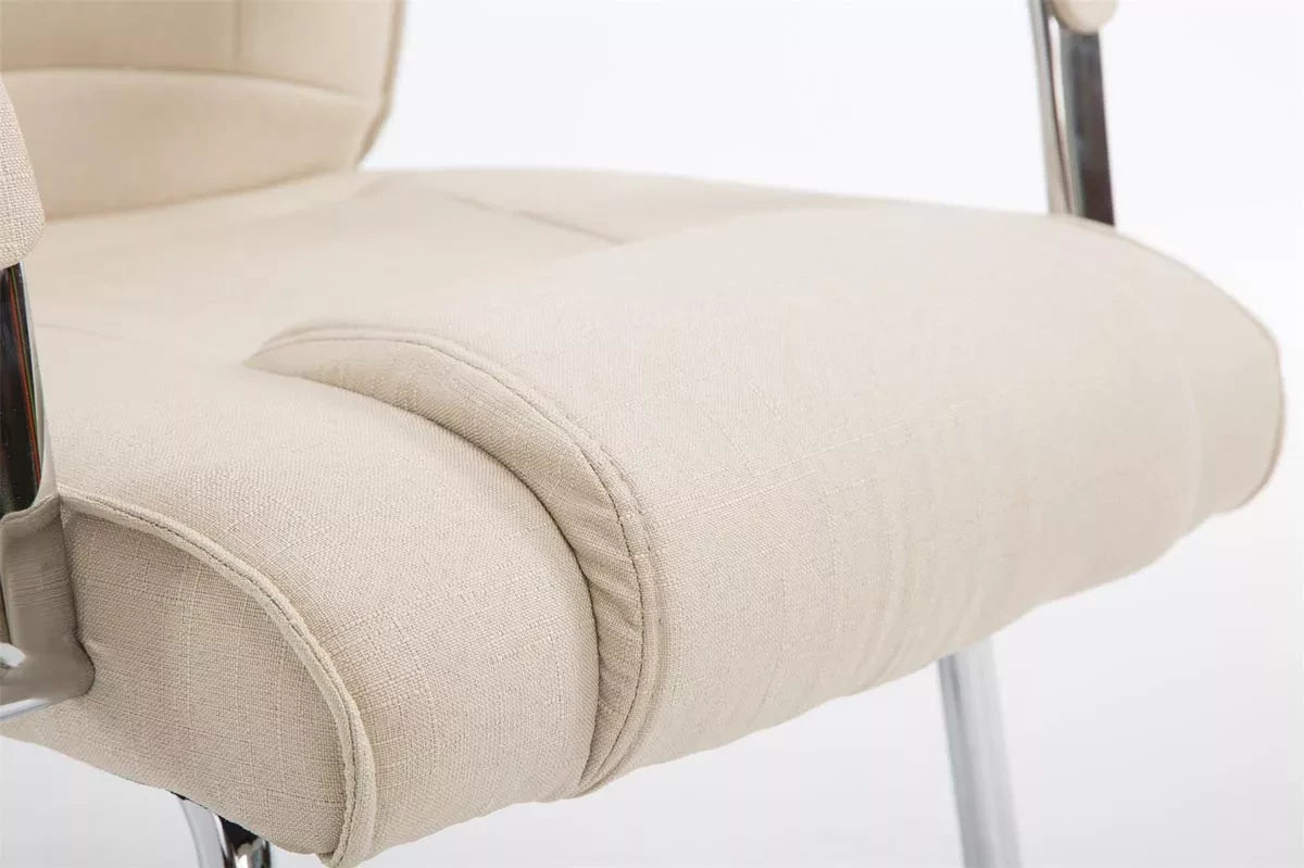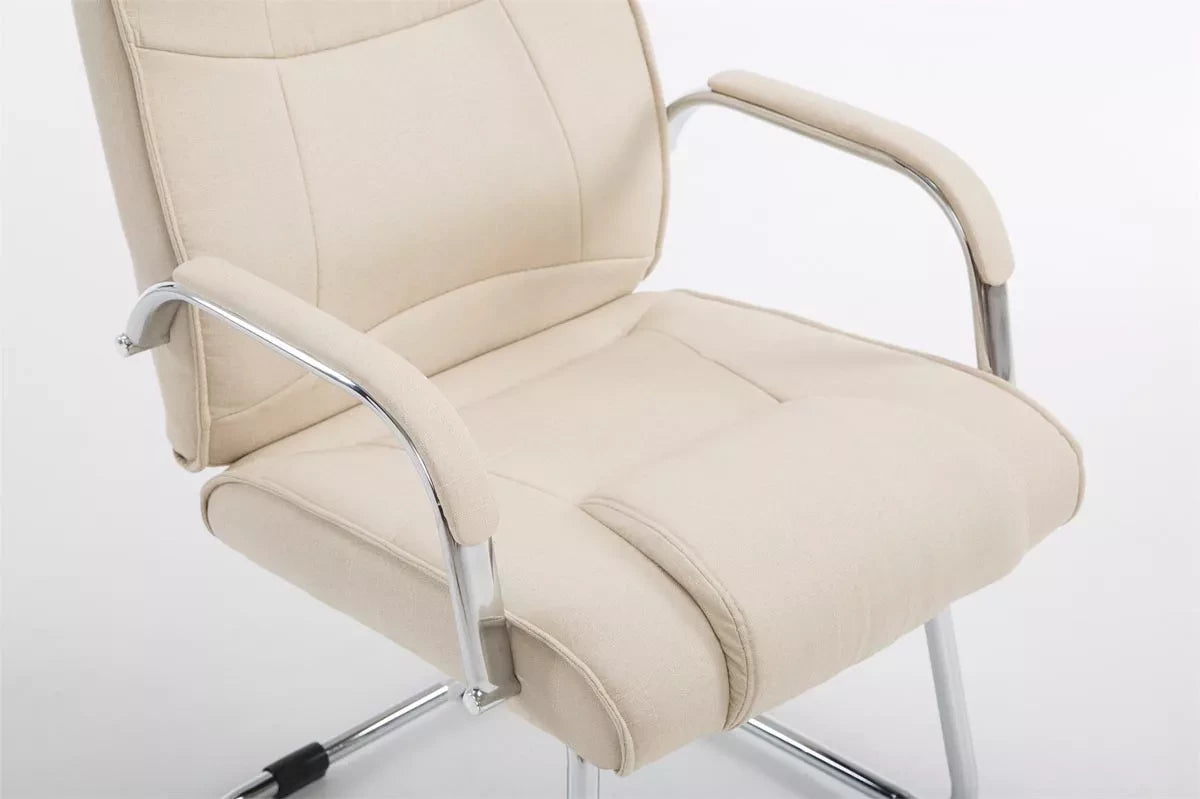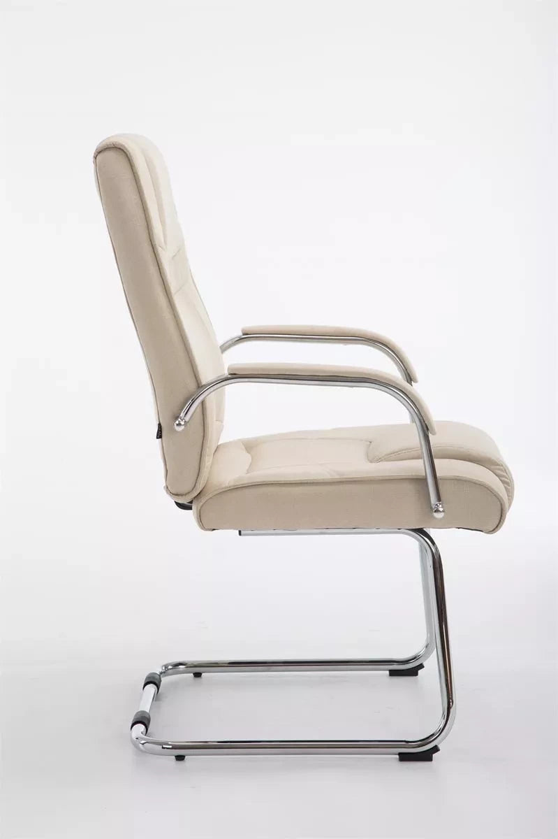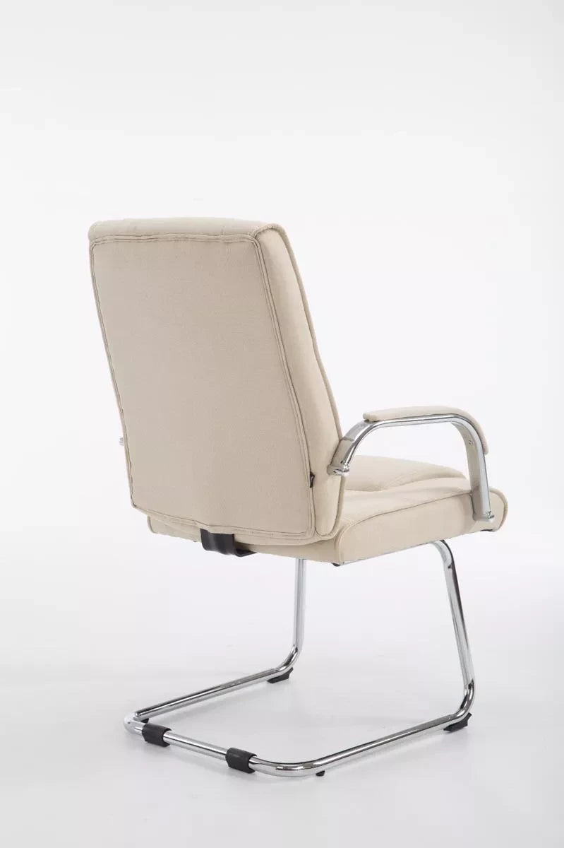 Der Besucherstuhl verleiht jedem Raum ein exklusives Aussehen und überzeugt nicht nur durch seine hervorragenden Sitzeigenschaften, sondern auch durch sein modernes Design. Es schwingt frei und passt sich exakt der Beinlänge und dem Gewicht der sitzenden Person an. Dank der ergonomisch geformten Sitzfläche und der bequem gepolsterten Armlehnen wird auch längeres Sitzen nicht anstrengend. Die bequeme Polsterung ist mit Stoff bezogen. Der Besucherstuhl auf dem robusten und extra verstärkten Metallgestell ist perfekt für jeden Anlass. Dieser Besucherstuhl ist ideal für große und schwere Menschen, da er eine maximale Belastung von 180 kg tragen kann.
