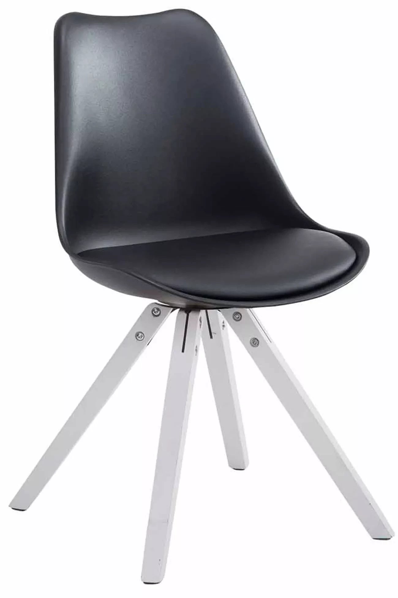 In And OutdoorMatch Besucherstuhl Ima – Esszimmerstuhl – schwarzes Kunstleder – weiße Beine – 1er-Set – Sitzhöhe 48 cm – Deluxe