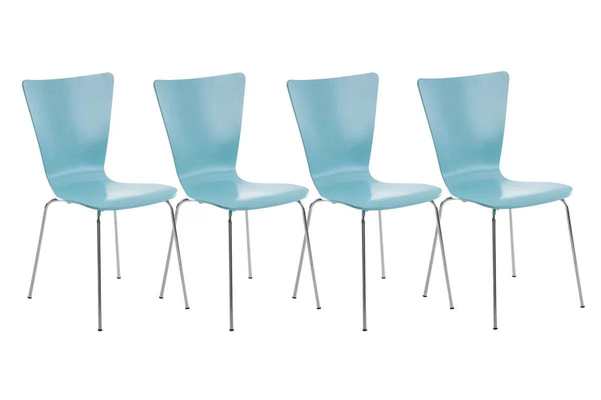 In And OutdoorMatch Besucherstuhl Mariah – Blau – Holzstuhl – 4er-Set – Mit Rückenlehne – Konferenzstuhl – Sitzhöhe 45 cm