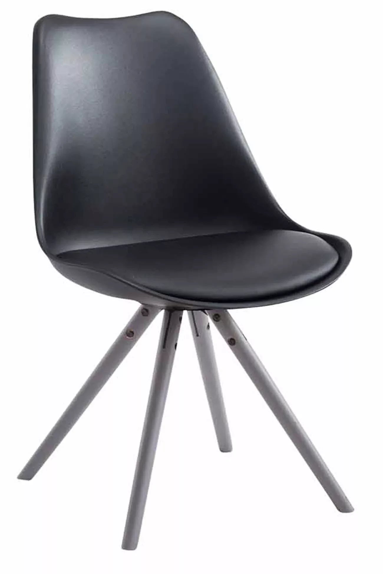 In And OutdoorMatch Besucherstuhl Wyatt – Esszimmerstuhl – schwarzes Kunstleder – graue Beine – 1er-Set – Sitzhöhe 48 cm – Deluxe