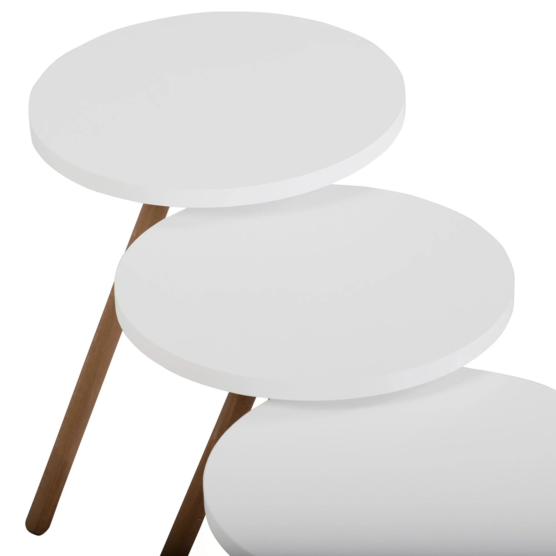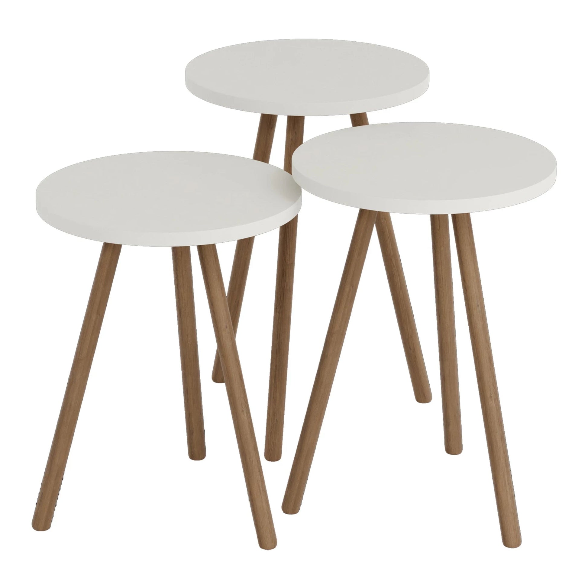 In And OutdoorMatch Beistelltisch Adeline – 3er-Set – rund – holzfarben und weiß – Spanplatte und Buche – stilvolles Design