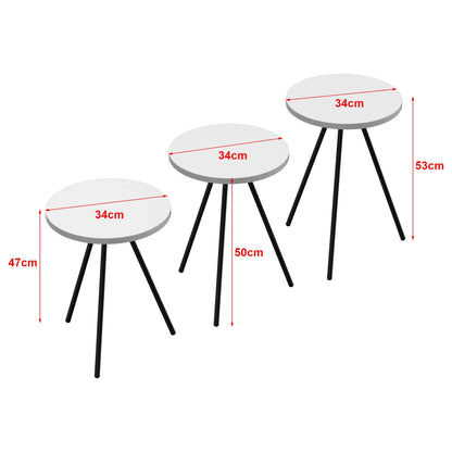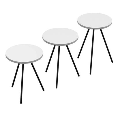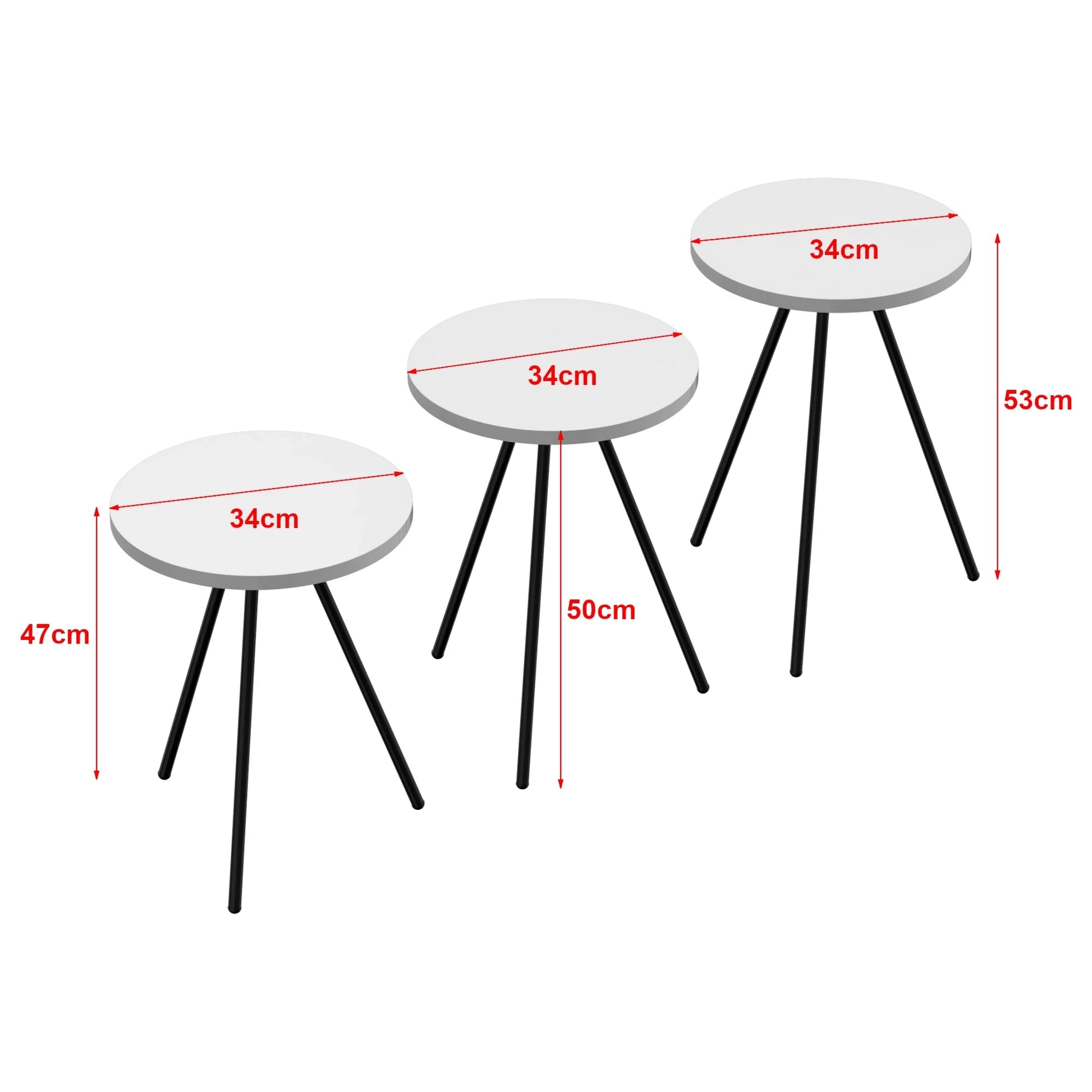In And OutdoorMatch Beistelltisch Magpie – 3er-Set – Rund – Weiß und Schwarz – Spanplatte und Metall – Stilvolles Design
