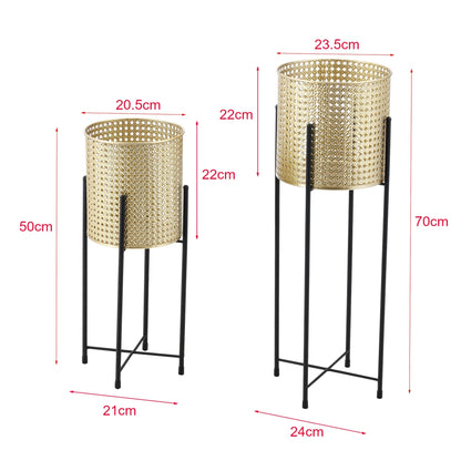 In And OutdoorMatch Blumentopf Antonetta – Auf Ständer – Metall – 2er-Set – Schwarz und Goldfarben – Stilvolles Design