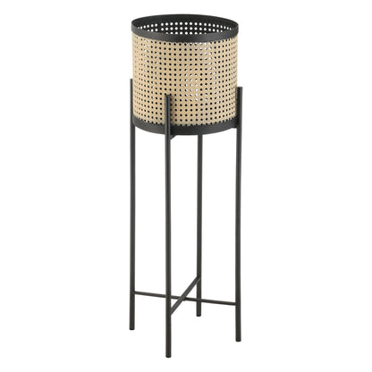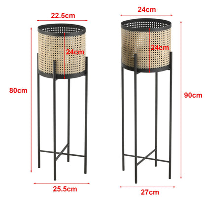 In And OutdoorMatch Blumentopf Athena – Auf Ständer – 2er-Set – Schwarz und Sandfarben – Metall – Stilvolles Design