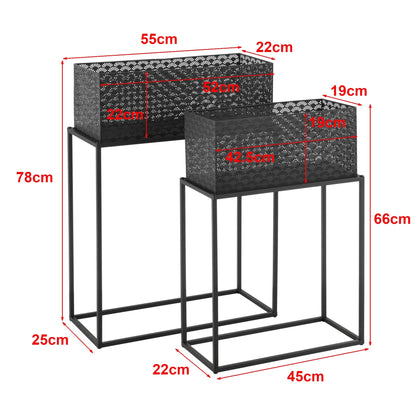 In And OutdoorMatch Blumentopf Clifton – Auf Ständer – 2er-Set – Schwarz – Metall – Stilvolles Design