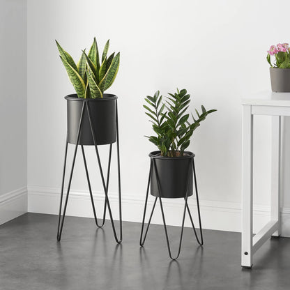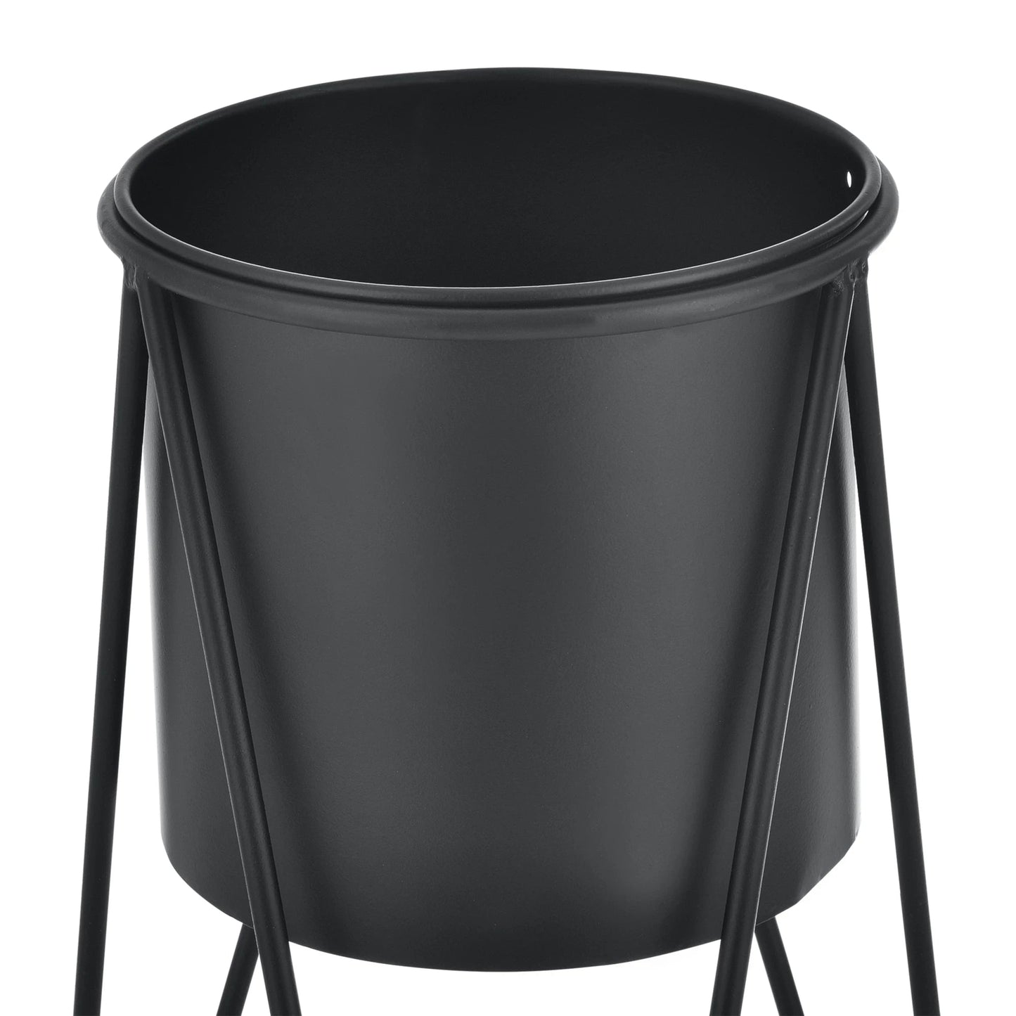 In And OutdoorMatch Blumentopf Eddie – Auf Ständer – 2er-Set – Metall – Schwarz – Modernes Design