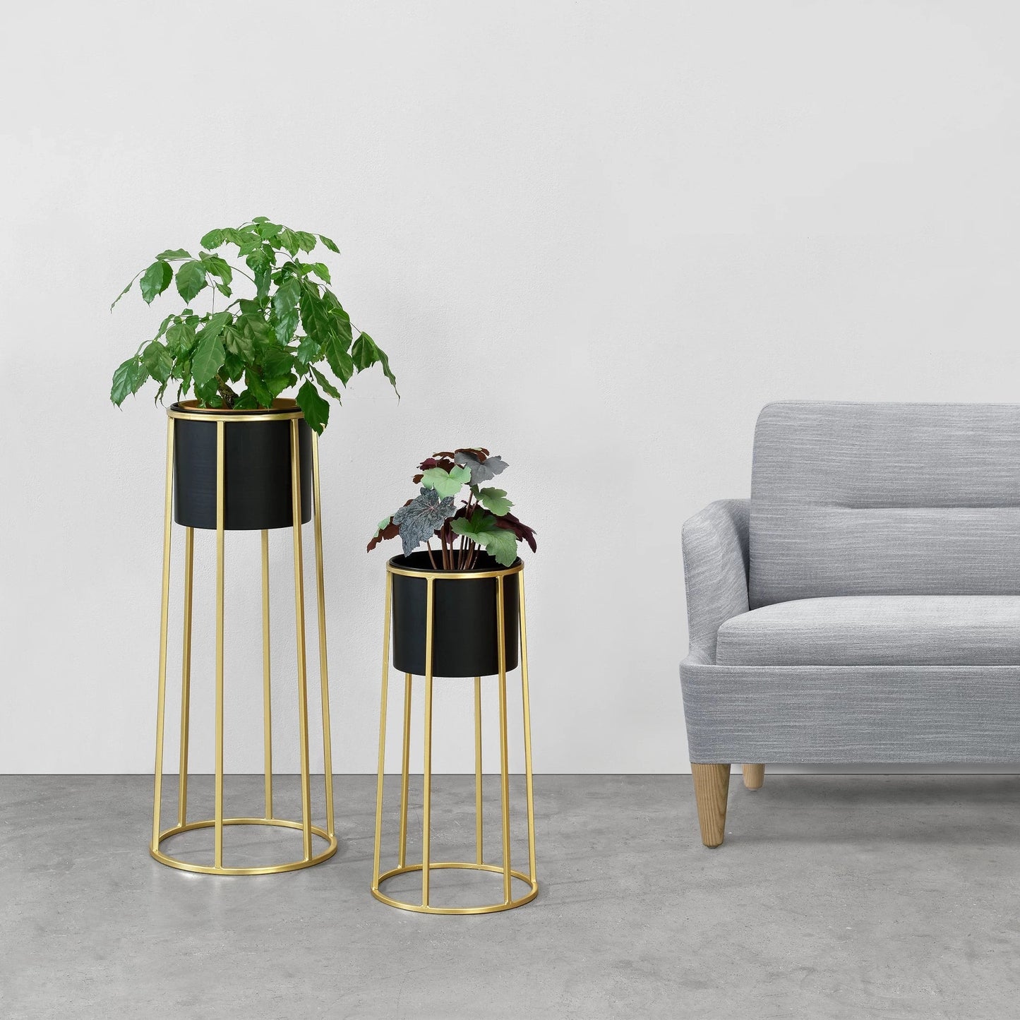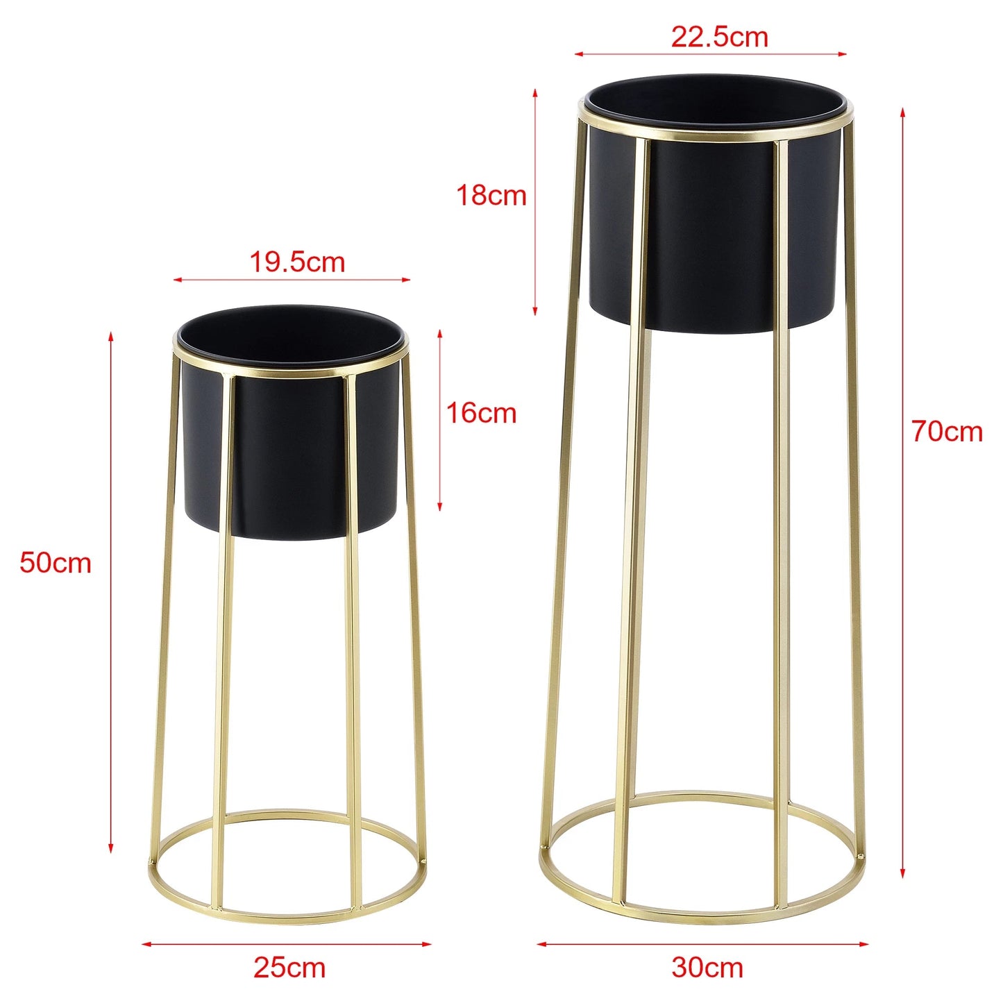 Blumentopf auf Ständer Larry, 2er-Set, Schwarz und Gold