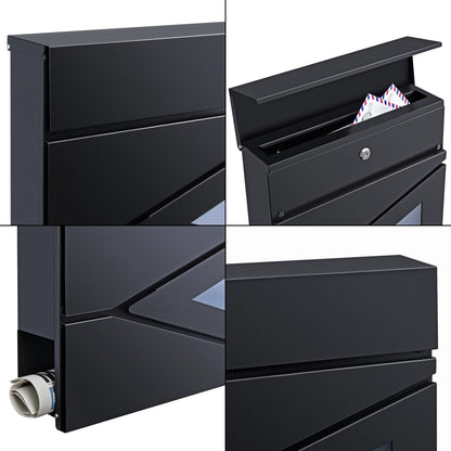 Dieser moderne Briefkasten ist ein echter Hingucker in Ihrem Außenbereich. Es hat eine große Öffnung und unten eine Zeitungsrolle.