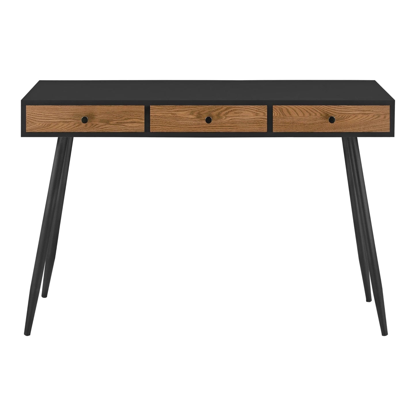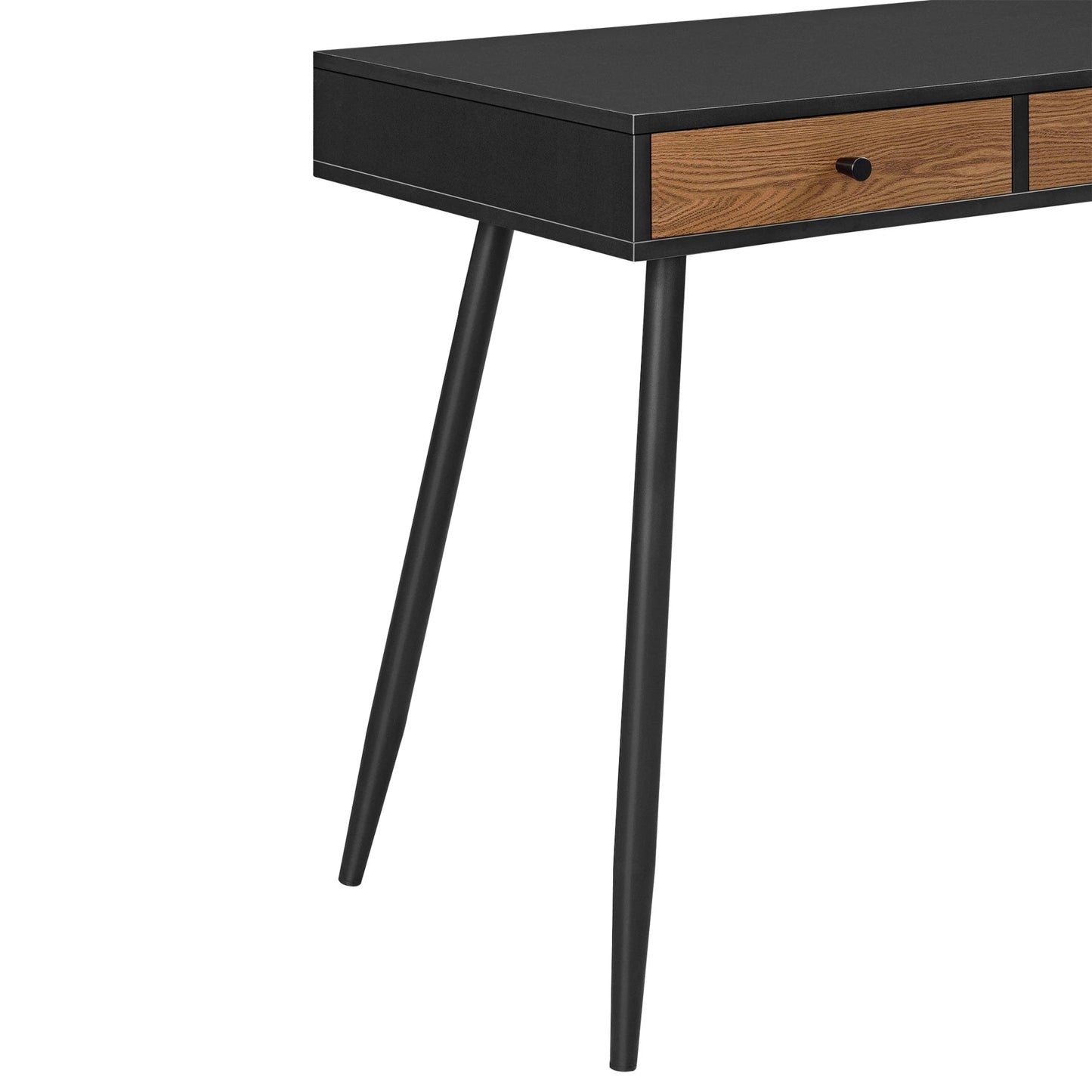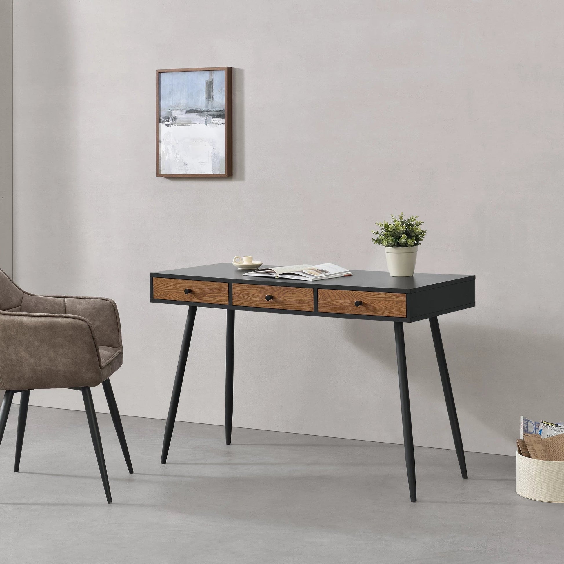 In And OutdoorMatch Schreibtisch Bryce – Mit Schubladen – 115 x 48 x 75 cm – Holzfarben und Schwarz – Spanplatte und Metall – Modernes Design