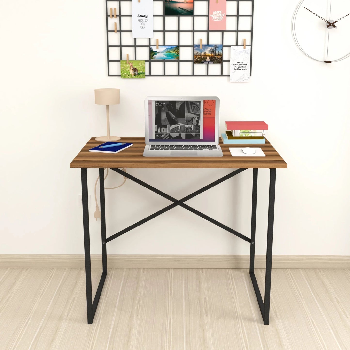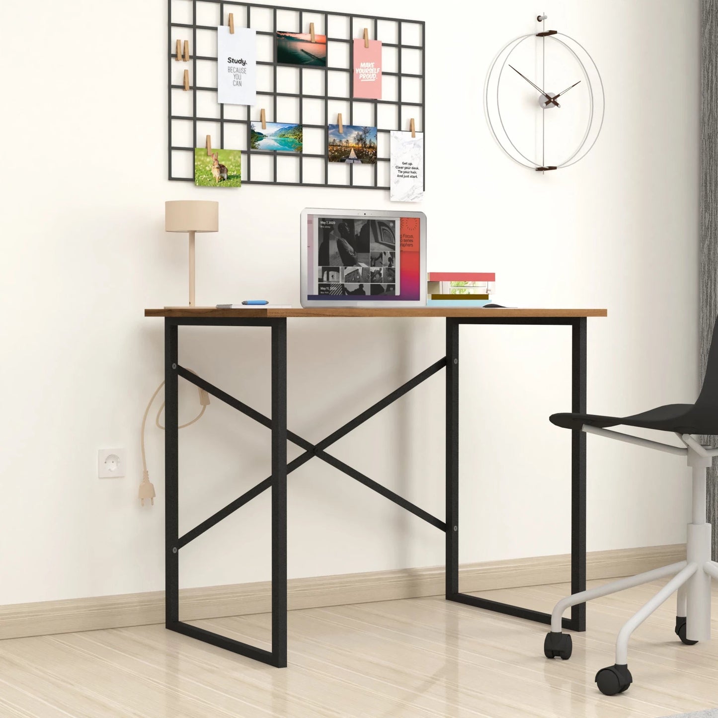 In And OutdoorMatch Schreibtisch Jackson - 75x90x60 cm - Walnussfarben - Spanplatte und Metall - Stabiler Stahlrahmen - Modernes Design