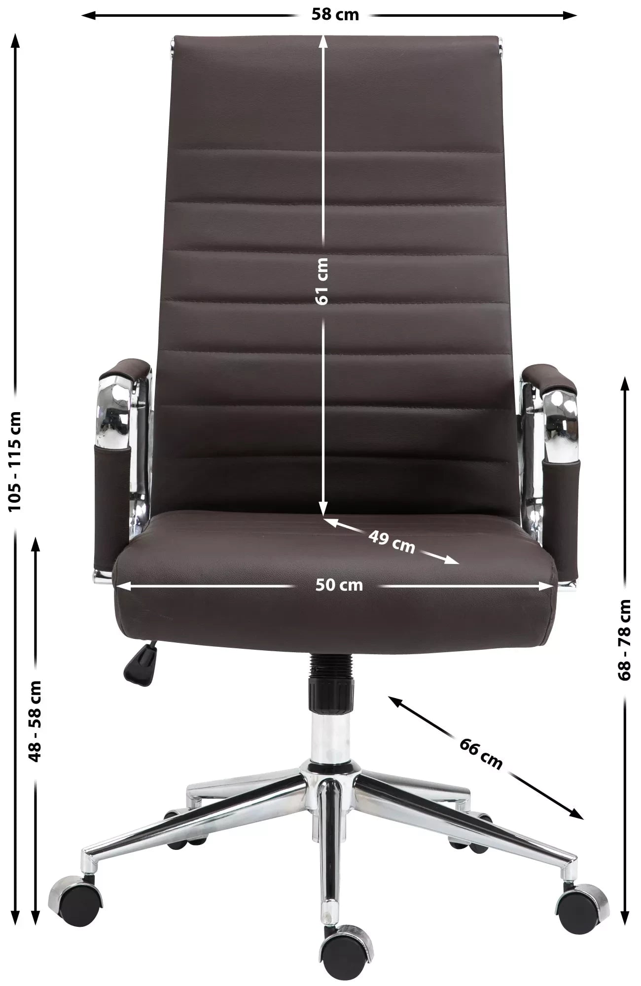 In And OutdoorMatch Bürostuhl Alvis – Dunkelbraun – Ergonomisch – Konferenzstuhl – Höhenverstellbar – Echtes Leder – 50 x 49 x 115 cm
