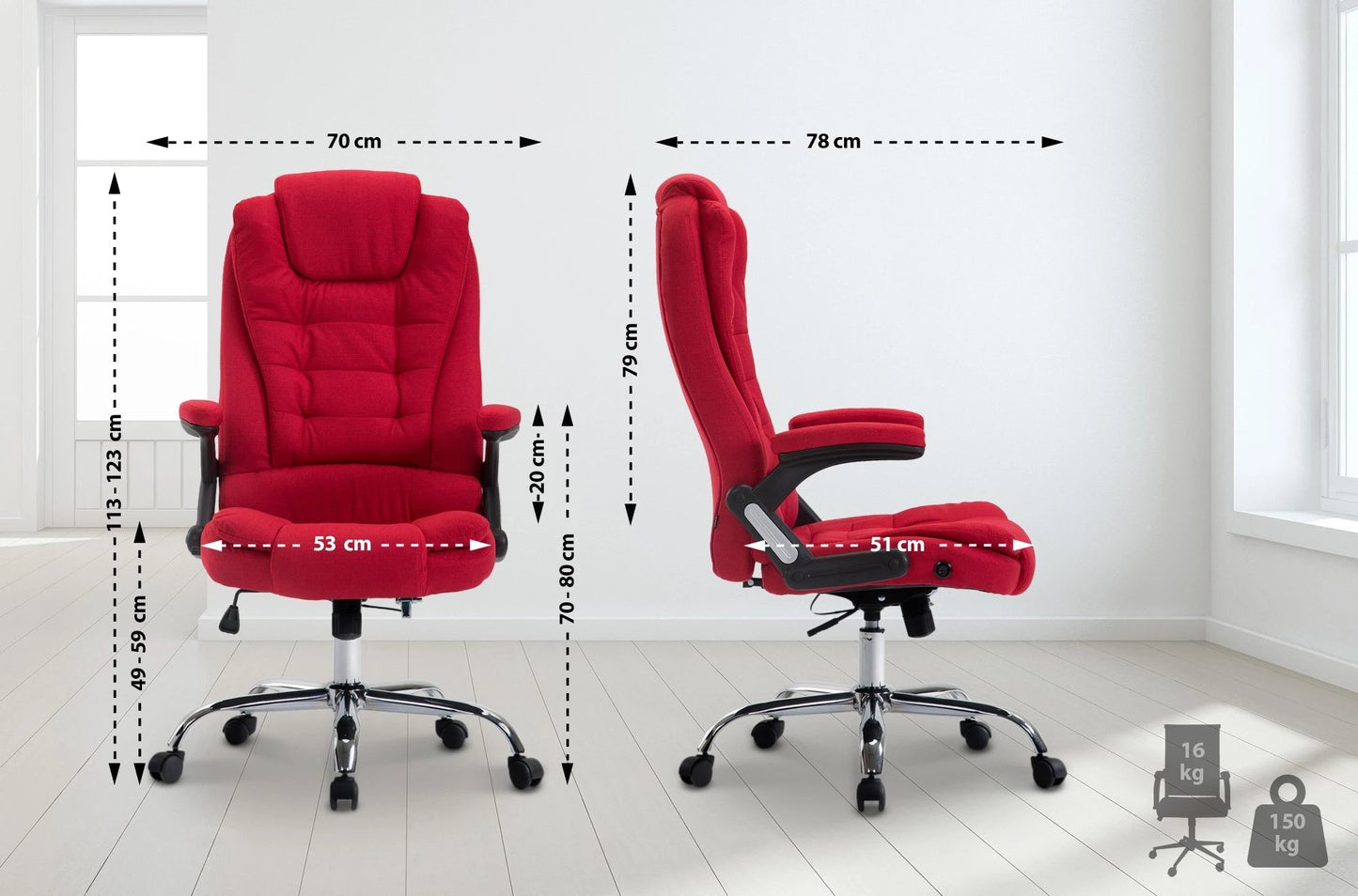 Armlehnenhöhe (vom Boden): 69,5 - 79,5 cm