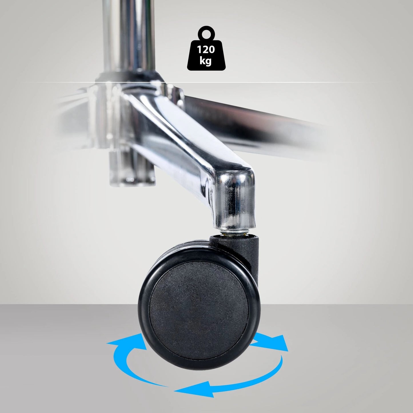 Dank der BIFMA-zertifizierten Gasfeder ist der ergonomische Bürostuhl höhenverstellbar. Der Drehstuhl steht sicher und stabil auf einem Metallgestell in Chromoptik. Der Bürostuhl ist maximal 120 kg belastbar.