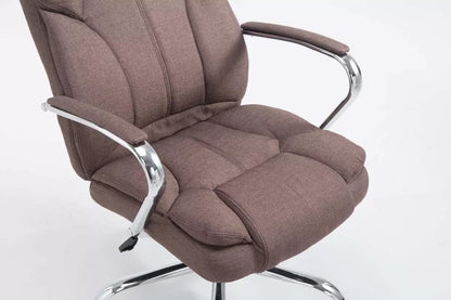 Der Chefsessel ist ein exklusiver Bürostuhl mit einer sehr hochwertigen Stoffpolsterung. Die Stoffpolsterung sieht nicht nur schön aus, sondern ist auch besonders robust und pflegeleicht. Ein stabiles Metallgestell in Chromoptik sorgt zudem für einen sicheren Stand. Darüber hinaus ist ergonomisches Sitzen durch die stufenlos verstellbare Sitzhöhe gewährleistet. Der integrierte Wippmechanismus sorgt für mehr Bewegungsfreiheit. Der Bürostuhl steht stabil auf fünf leichtgängigen Rollen. Egal ob Hartboden oder Teppich, Sie rollen immer leicht und locker über den Boden.
