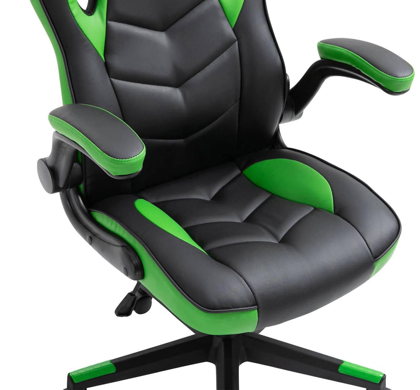 Der Rennstuhl Benji im sportlichen Design gepaart mit Funktionalität bietet höchsten Sitzkomfort. Ein absolutes Must-Have, nicht nur für Rennsportbegeisterte! Der eingebaute und stufenlos verstellbare Wippmechanismus sowie die verstellbare Sitzhöhe sorgen zudem für mehr Bewegungsfreiheit und Flexibilität. Die Armlehnen sind dick gepolstert und können bei Bedarf hochgeklappt werden. Der angenehm gepolsterte Sitz mit pflegeleichtem Kunstlederbezug sorgt nicht nur für eine gesunde Sitzposition, sondern auch für dauerhaften Komfort. Kunstleder hat den Vorteil, dass es elastisch ist und sich bei Entlastung wieder geschmeidig dehnt. Das sieht nicht nur schöner aus, sondern verlängert auch die Lebensdauer des Sitzbezugs. Der Gaming-Stuhl steht sicher auf fünf leichtgängigen Rollen und einem Kunststoffgestell. Ob Hartboden oder Teppichboden, Sie rollen immer leicht und locker über den Boden.